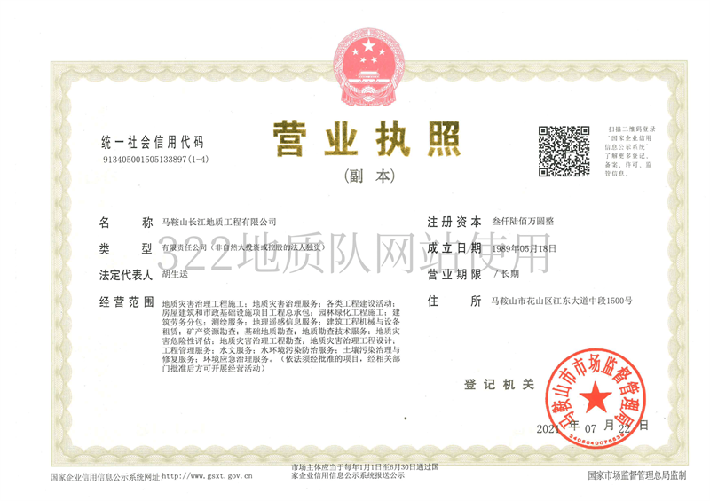 马鞍山长江地质工程有限公司营业执...