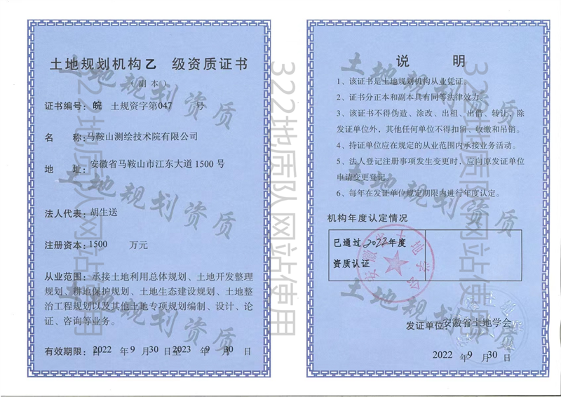 土地规划乙级证书