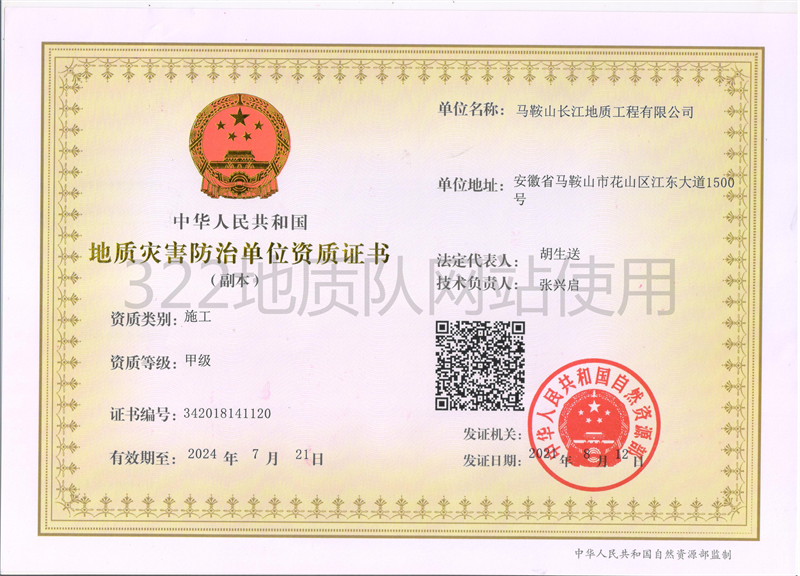 322地质队地质灾害施工甲级证书