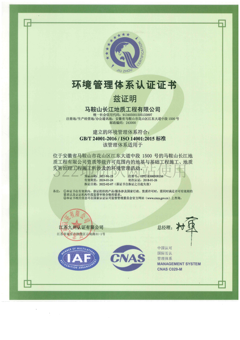 马鞍山长江地质工程有限公司环境管...